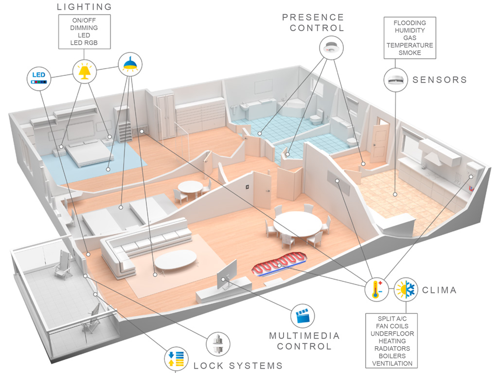 Objedinjujući upravljanje grejanjem, hlađenjem, ventilacijom, rasvetom, roletnama, sigurnosnim sistemima,